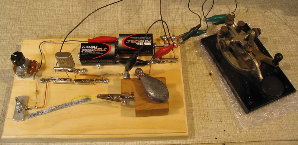 As can be seen above, it is now routine to make an 80 meter (3.5 to 4 mhz) cw transmitter using a zinc negative resistance crystal oscillator. At this point I have been able to make zinc oscillators run up to about 13 mhz but stable and reliable operation for a 40 meter (7 mhz) transmitter seems more difficult. A 40 meter transmitter is definitely possible but so far most of my effort has been concentrated on making an 80 meter transmitter.
